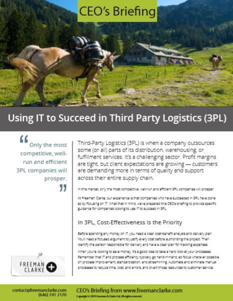As well as the summary above, we have created a more detailed CEO’s briefing on using IT to succeed in 3PL. Click on the link to download the full CEO’s briefing.