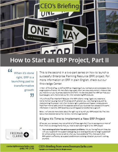 This is the second in a two-part series on how to launch a successful Enterprise Planning Resource (ERP) project. For more information on ERP in plain English, check out our Knowledge Center.