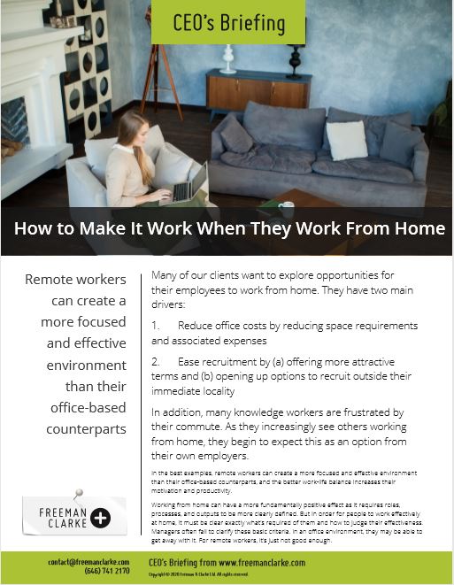 Many of our clients want to explore opportunities for their employees to work from home. They have two main drivers: