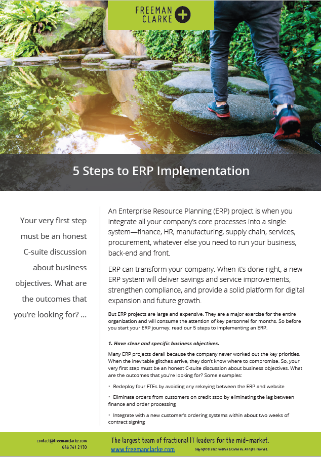 Too often ERP projects are run by a gaggle of people with vague roles. Instead, the CEO must absolutely appoint someone with the necessary technical know-how, business experience, people skills, and leadership qualities to run a complex project. (We would, of course, suggest one of our fractional IT leaders join your team.)